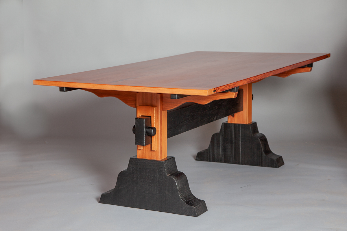 View the full image Redwood Trestle Table Commission Reclaimed Old Growth Redwood from Big Sur, Reclaimed Douglas Fir 29" x 40" x 72" 2023